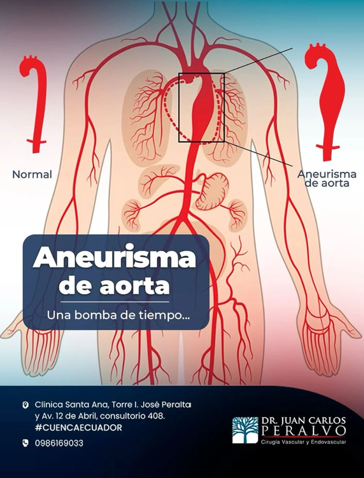 An aortic aneurysm is a silent threat, but prevention and timely diagnosis can save lives. With Dr. Juan Carlos Peralvo, you can access specialized testing and advanced treatment in Cuenca.